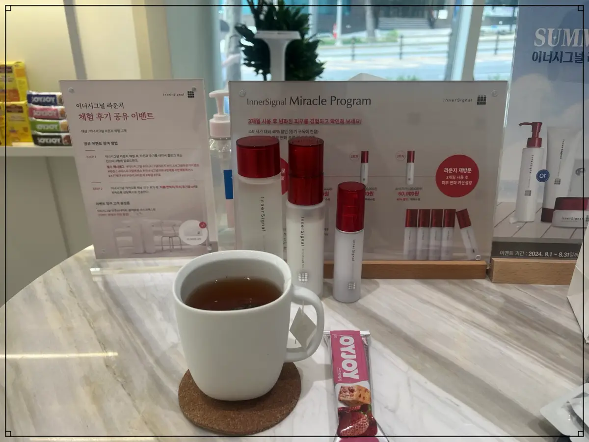 관리를 마무리하고 나면 파우더룸에서 정리를 하고 관리실 밖으로 나와 차 한잔을 마시며 간단한 설문을 진행하시면 됩니다.